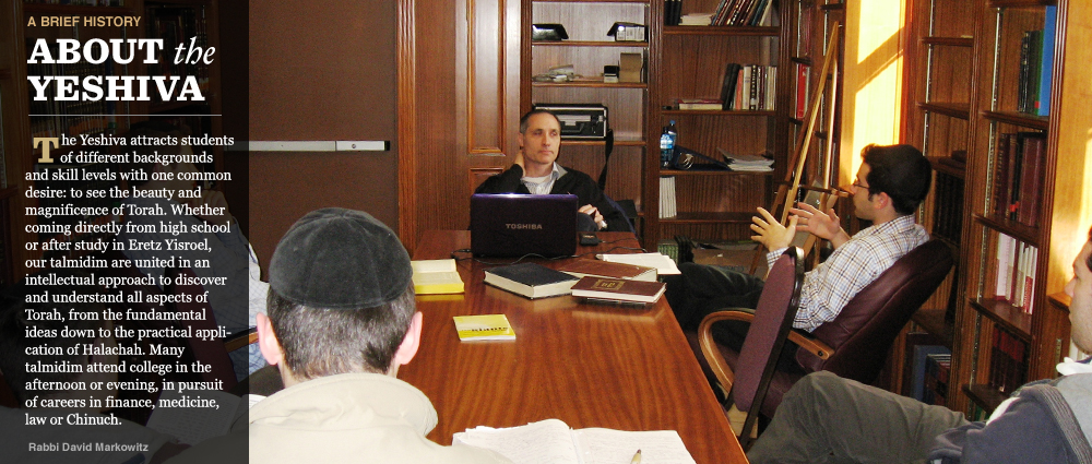 “For the past three years the Yeshiva and its community have helped me make tremendous strides in my learning, and have cemented the foundations of Torah upon which I hope to build for the rest of my life. The Rebbeim and guys are all warm, open-minded, and friendly, which has definitely helped in making me feel comfortable in my learning environment. ”